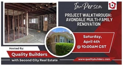 Quality Builders, in partnership with Second City Real Estate, is excited to announce an in-person project walkthrough on Saturday, April 4th, 2026 at 10 AM. We love Chicago zoning, permitting, and renovation questions, and are passionate about working with investors on their real estate journey.