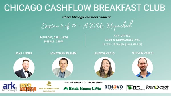 Chicago Real Estate Investors, Agents & Professionals: Welcome to the Chicago Cash-Flow Breakfast Club! Join us for our ongoing series of real estate investor education, networking, and mastermind events. This is the fourth session in our 12-part monthly education series.