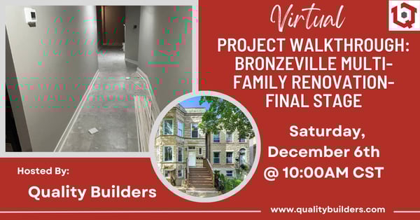 Quality Builders is excited to announce another VIRTUAL project walkthrough on Saturday, November 8th, 2025 at 10 AM. We love Chicago zoning, permitting, and renovation questions and are passionate about working with homeowners, house hackers, investors.